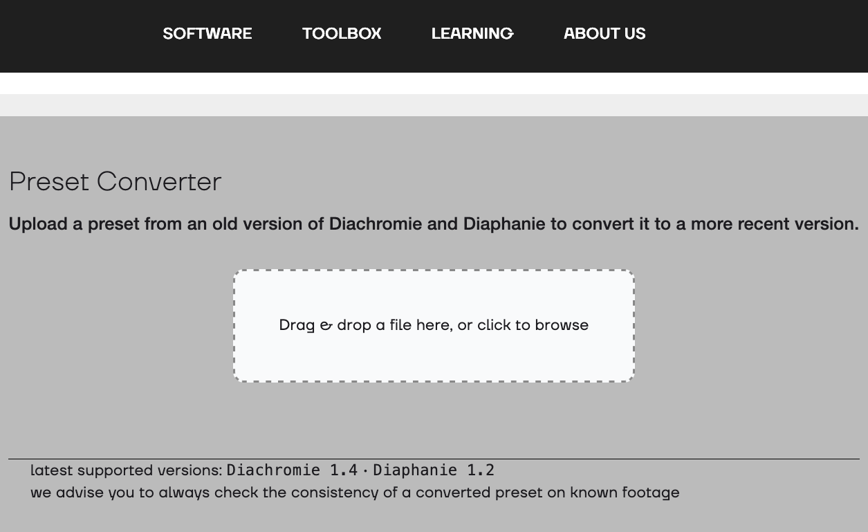 To use them, you simply need to update your Presets with our online Preset Converter. Available in the Toolbox, it renders them compatible and checks their consistency. Everything that can be matched will be matched, and you will be informed of any potential discrepancies.